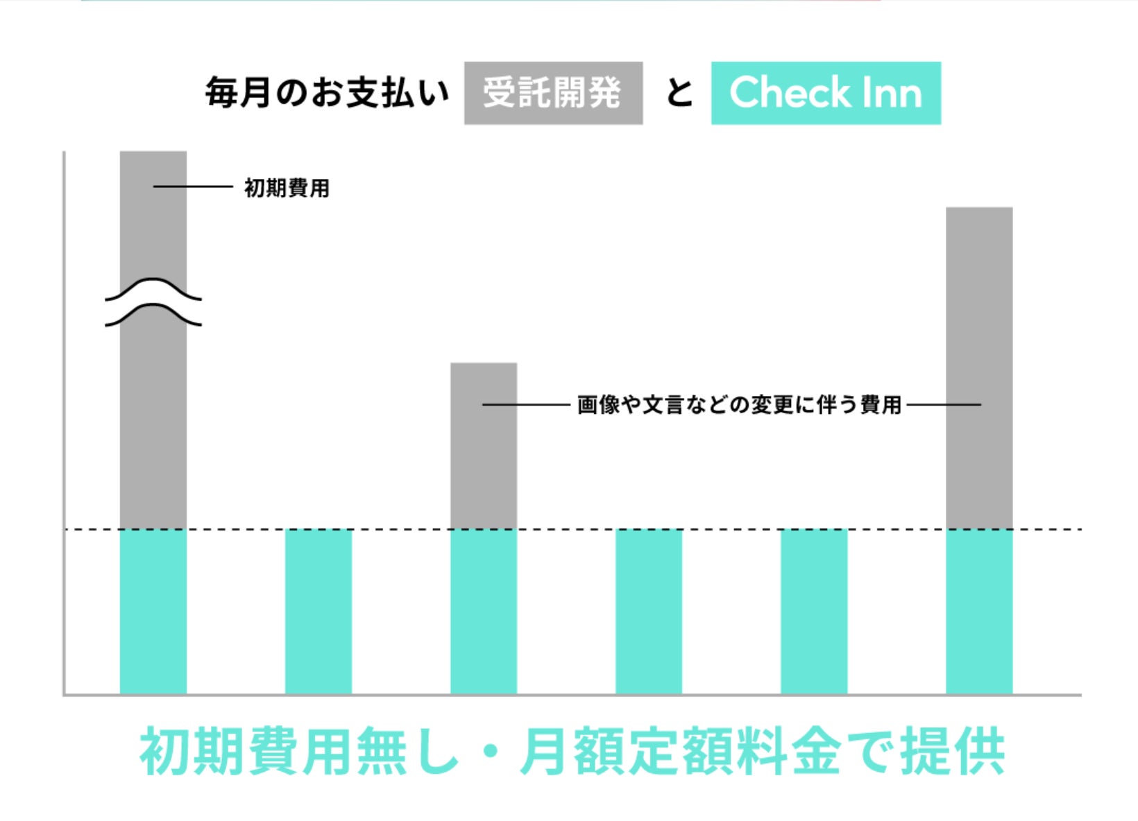 ノーコード技術を使うため、従来発生していたコスト(コーディング費用・サーバー構築費用)を削減。ハイクオリティなサイトを初期費用無し・月額定額料金で提供している。