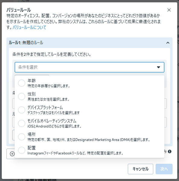 2025年11月以降、Meta広告にて「バリュールール」の設定が可能になりました。バリュールールとは、Advantage+オーディエンスの活用が推奨される中で、ある程度自動化を効かせつつも、バリュールールを活用することで、特定のオーディエンスに対して入札を強めたり、極力出さないようにしたりと手動のコントロールを行うことができる機能です。